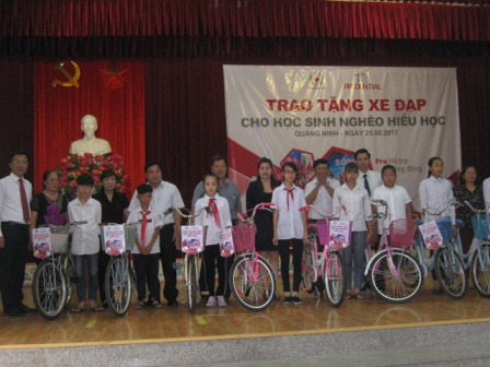 Prudential trao tặng xe đạp cho học sinh nghèo phường Mạo Khê.
