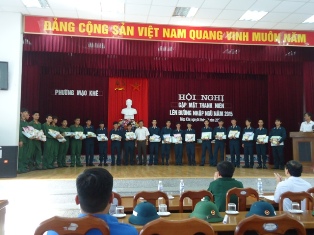 Nhằm động viên kịp thời thanh niên lên đường thực hiện nghĩa vụ thiêng liêng bảo vệ Tổ quốc, ngày 4/9/2015, BCH quân sự phường Mạo Khê đã tổ chức buổi gặp mặt, tặng quà cho các tân binh. Tới dự chỉ đạo buổi gặp mặt có đồng chí Nguyễn Ngọc Quân - Bí thư Đảng uỷ Phường. Đ/c Phạm Thanh Trường - Chủ...