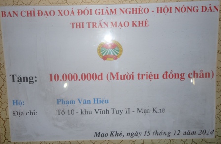 - Hội chữ thập đỏ thị trấn giúp đỡ hộ nghèo với số tiền 15.000.000 thoát nghèo bền vững (02/12/14)